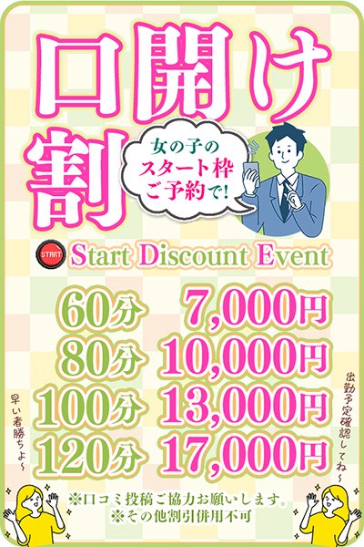 ・口コミ割・メルマガ10分サービスなど 他サービスとの併用不可